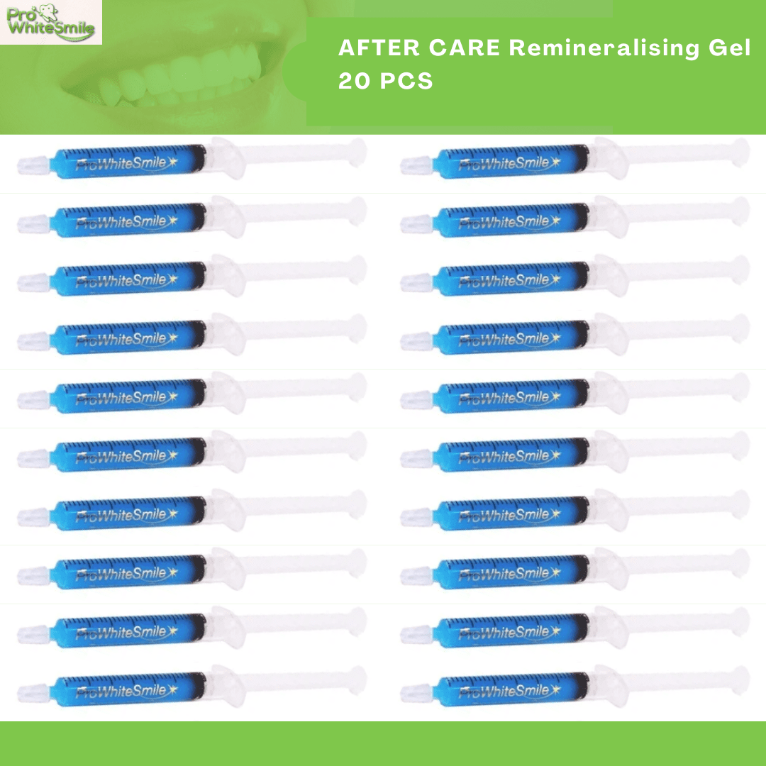 After Care Remineralizing/Desensitizing Gel, Pack of 20. This Gel is similar to vitamins and minerals for your teeth. A great way to revitalise tooth enamel on its own or after teeth bleaching. Use at any time or for 5 minutes after your whitening session to help with sensitivity.