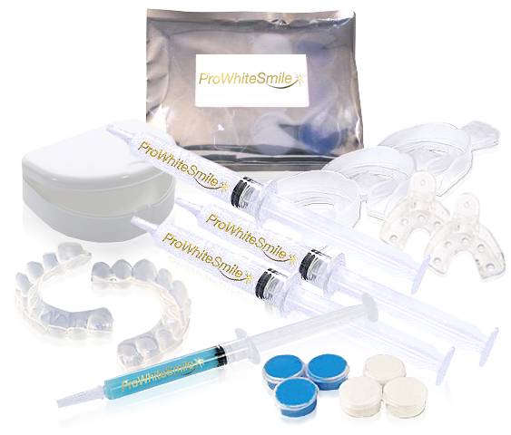 This is our Lab Made Custom Tray Complete System. It comes with Upper and Lower Technician Made Custom Trays by Post. Three large 10ml syringes of our best-selling ProWhiteSmile 16%-22% Carbamide Peroxide Gel. Mint Flavoured Teeth Whitening Gel.